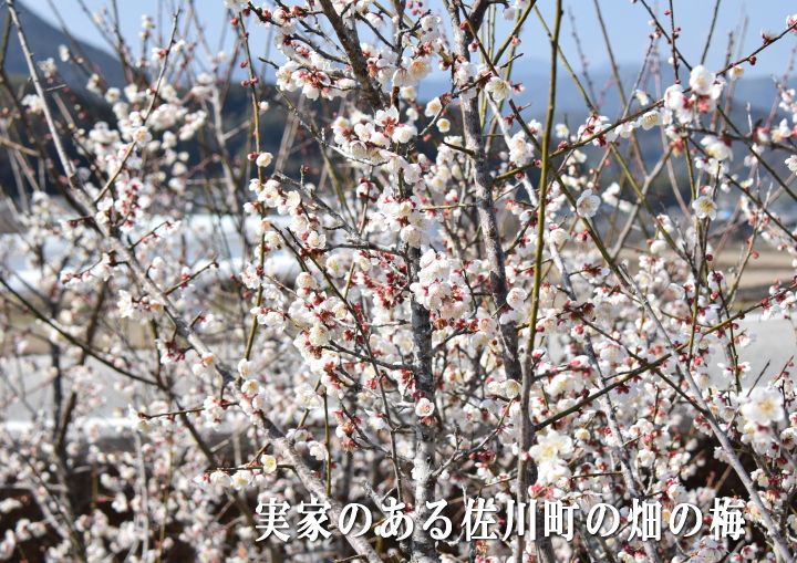 実家の畑の梅は、今年は花だらけって感じです。 |