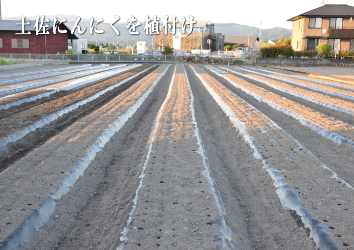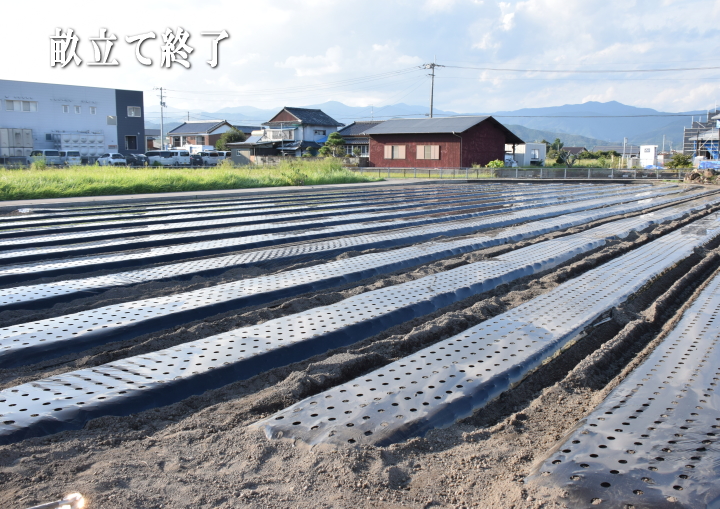 元肥を打ち込んだ後、この日は頑張って畝立てを終了させました。 |