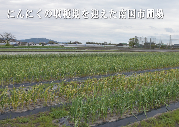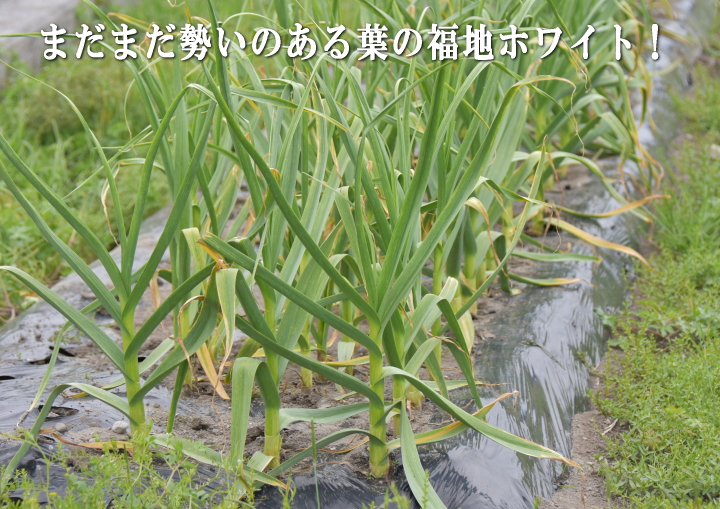 4月に入ってからグズついた天候が続いています。 この時期はそのシーズンのにんにくのデキに直結する最も大切な時期であります。 過去には、長雨によって腐りが出たり、雨がなく高温続きで葉が早く枯れてしまったりと、幾度となく泣かされたこともありました。 収穫が終わるまで残すところひと月余り、どうか良い天候に恵まれ作業が無事終了するよう願うばかりであります。