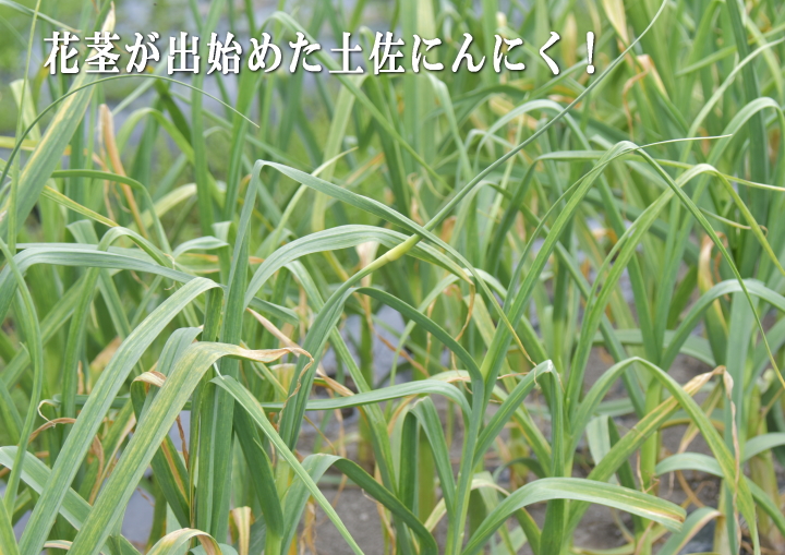 土佐にんにくも花茎が伸びて来ました。 茎は茹でてから、サラダとして食べたり、豚肉と炒めたりして食べます。 この時期ならでは、美味しい春の味覚です。
